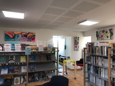 Après avoir exposé à Lanouée, Laurence, la responsable de la médiathèque de Josselin et coordinatrice du regroupement de quatre médiathèques des villages environnants, m’a contactée pour que j’expose au milieu de ses livres.